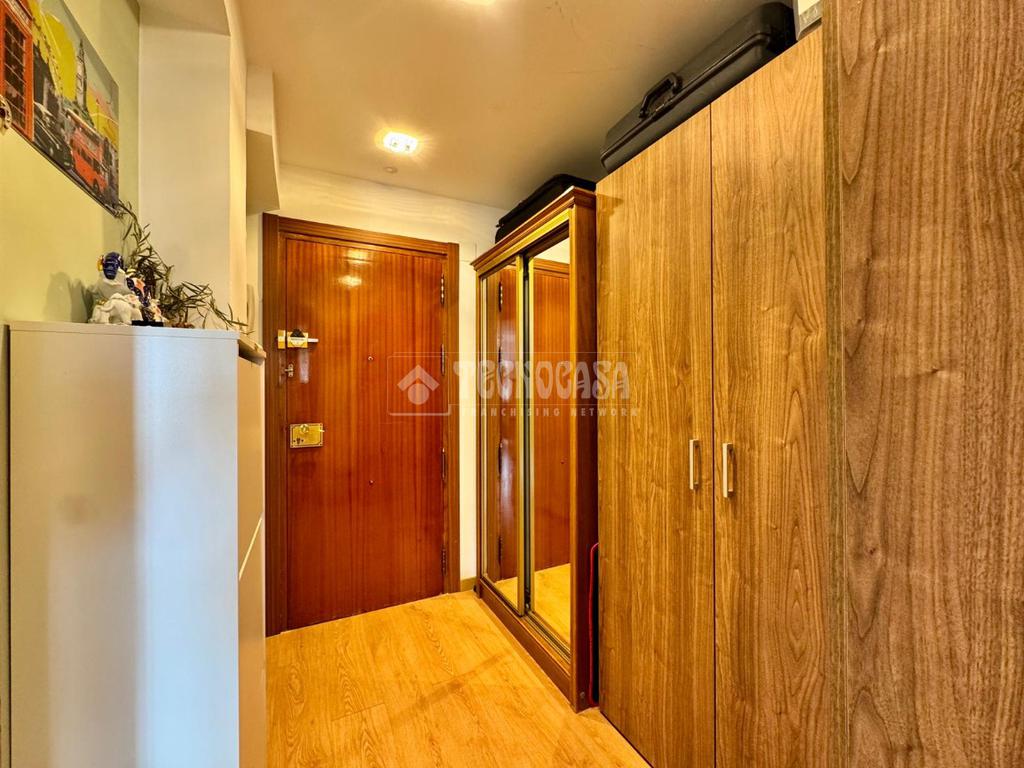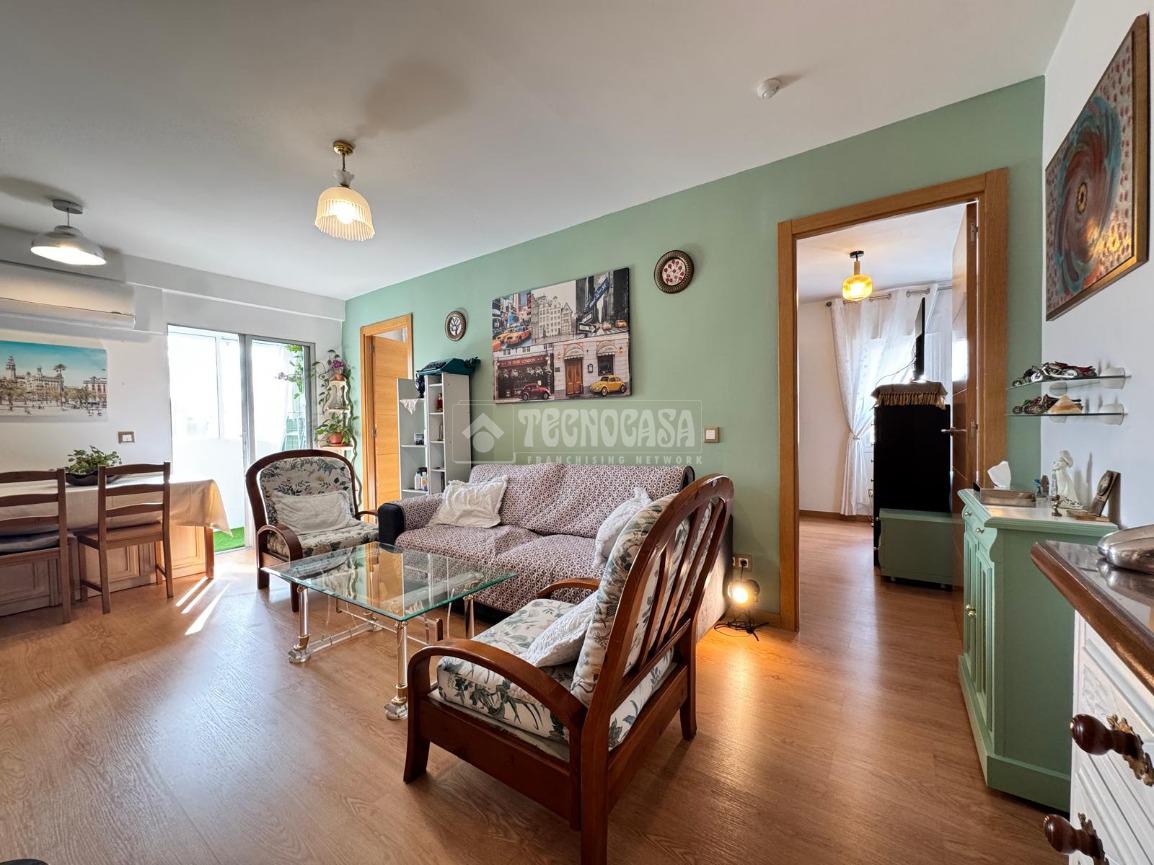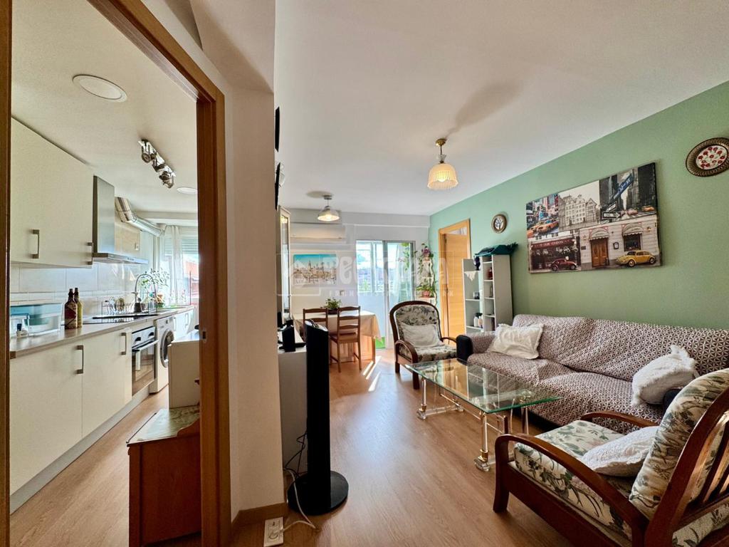 El piso cuenta con una distribución muy funcional: amplio recibidor de entrada, salón distribuidor, cocina independiente con acceso a terraza acristalada exterior, dos habitaciones dobles con amplio espacio de almacenaje y un baño completamente reformado con ducha, radiador toallero y mueble con lavabo.